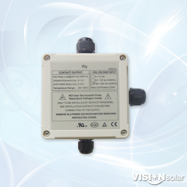 2. VISION solar controllers are always designed for electric heating power less than 220V 1.5KW, for bigger power control an electric relay SR802 is required for safe working;