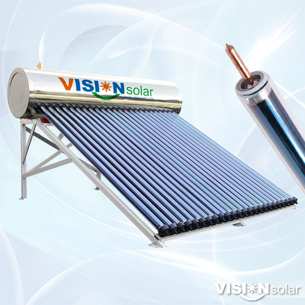 SYSTEM DESCRIPTION VISION VHS series solar water heater incorporates a number of high efficiency heat pipe tubes, high pressure hot water tank, supporting bracket and accessories.The pressurized water tank has a number of top-closed sleeves
