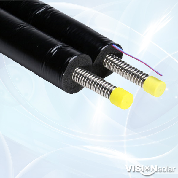 The whole system is a product that a corrugated stainless steel pipe fully insulated and incorporates a sensor cable for easy connection to collector and controller.